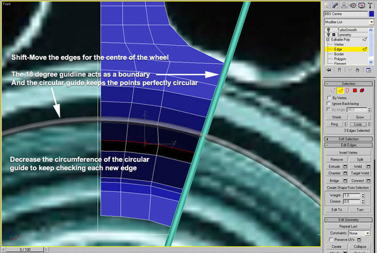 For the centre of the rim it is again IMPORTANT that you use a circular spline guide. You can then just adjust the circumference to match the new edges as you create them.