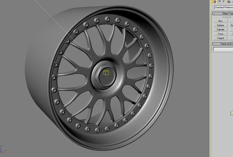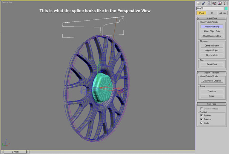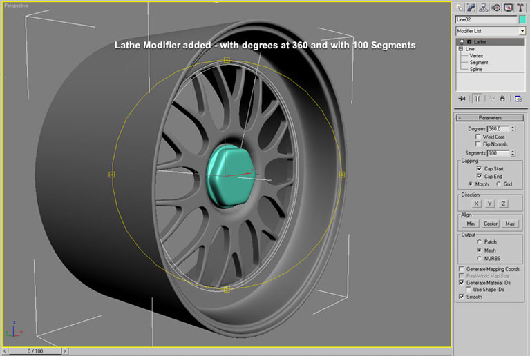 First switch to the side view and draw the outline shape of your rim using the Spline - Line tool - close the loop. This is now entirely up to you what your rims will look like - I've tried to get an authentic BBS Shape.