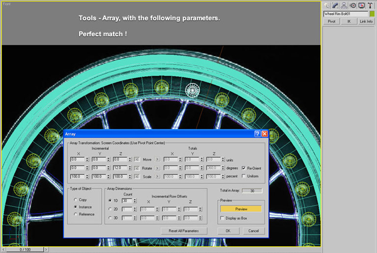 Now use the Array modifier with the following settings - it is an exact match ! Use Instance.